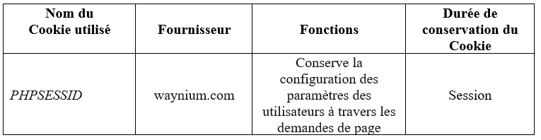 ARTICLE 1. PARTIESTHIS COOKIE POLICY IS APPLICABLE BETWEEN THE PUBLISHER OF THE SITE, THE COMPANY WAYNIUM, HEREINAFTER "WAYNIUM", AND ANY PERSON CONNECTING TO THE SITE, HEREINAFTER "THE USER".ARTICLE 2. DEFINITIONS